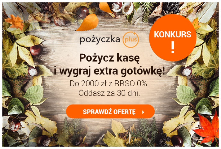 Zapraszamy do skorzystania z materiałów dotyczących konkursu na pozyczkaplus.pl (jpg+gif+html), Konkurs trwa od 1 października do 15 listopada 2018 Warunkiem jest wzięcie pożyczki oraz podanie pomysłu na dokończenie zdania: „Jesienią mogę …” na stronie: >> http://pozyczkaplus.ekstrapromocja.pl << Nagrody to: 5000zł: nagroda główna. 5 x 1000zł: nagrody pocieszenia. P.S.Od teraz wypłaty pożyczek będą realizowane za